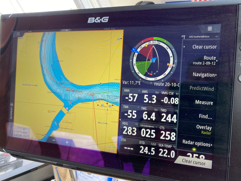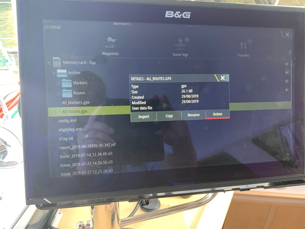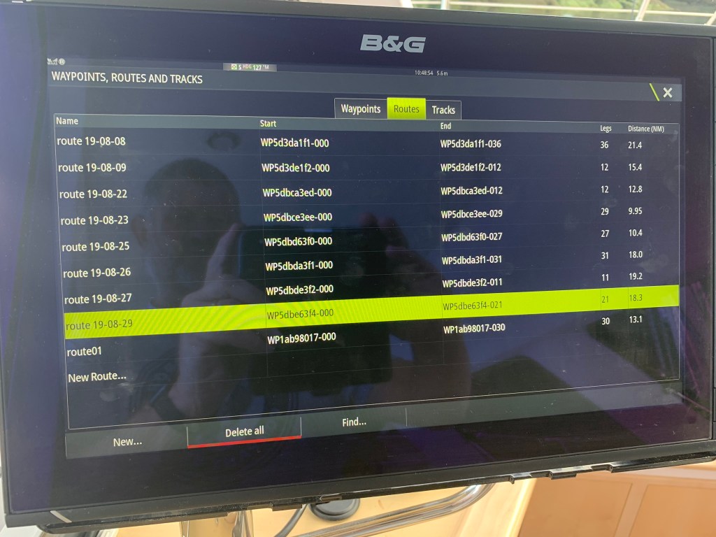 Working out how to transfer a route from the Navionics App to a B&G Chartplotter took quite a while to figure out – and is very poorly documented by either Navionics or B&G – but its a super useful capability as creating routes on a chartplotter is painful at best.